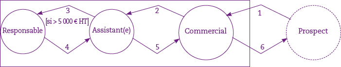 L’assistant(e) remarque que la validation du responsable (entre le flux n° 3 et le flux n° 4), pour indispensable qu’elle soit, est susceptible de retarder la réalisation du devis, notamment dans le cas où le responsable est absent ou indisponible.