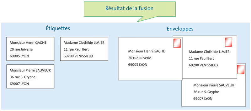 La fusion permet aussi d’éditer des étiquettes et des enveloppes.