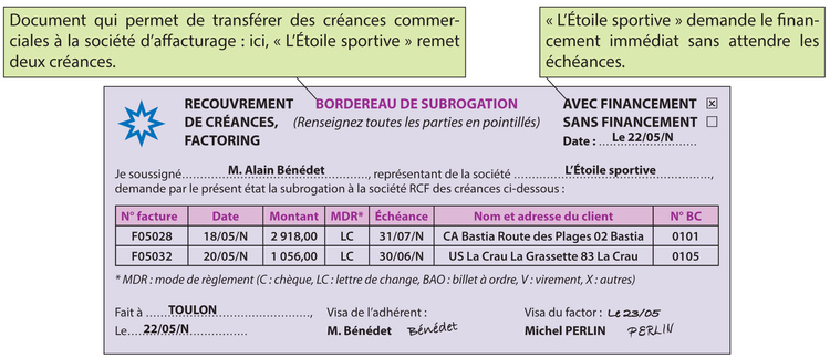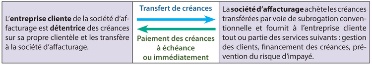 L’affacturage (ou « factoring ») consiste en un transfert de créances commerciales (factures) de leur titulaire à une société d’affacturage ou un facteur (ou « factor »). Ce dernier se chargera de garantir le recouvrement (paiement) des créances, même en cas de défaillance momentanée ou permanente du débiteur.