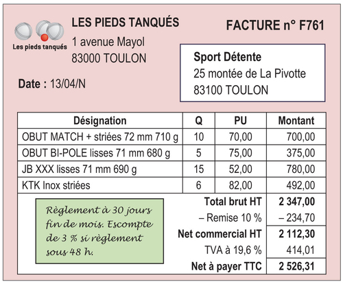Une entreprise a vendu des marchandises à un client :