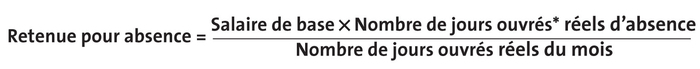 L’absence d’un salarié (convenance personnelle, congés payés, maladie dans certains cas…) entraîne une retenue sur le salaire proportionnelle à la durée de l’absence (à moins de dispositions plus favorables dans l’entreprise). Cette retenue peut être calculée selon deux méthodes :