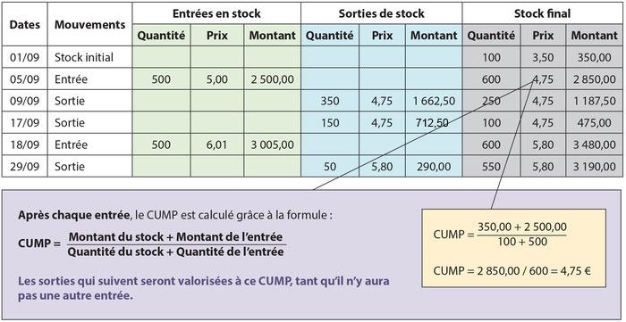 Cette méthode valorise les sorties de stock en fonction d’un prix moyen, qui peut être calculé après chaque entrée ou en fin de période. |